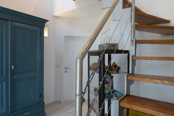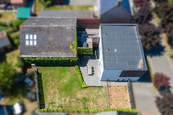 woning (213m²) : inkom met traphal - gastentoilet - leefruimte met eetplaats en salon - geïnstalleerde keuken - berging - bureau - 3 slaapkamers op het verdiep (mogelijkheid tot 4) - badkamer met ligbad, inloopdouche en toilet - omheinde tuin met overdekt terras.