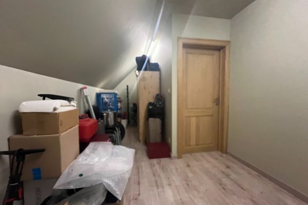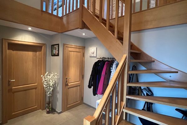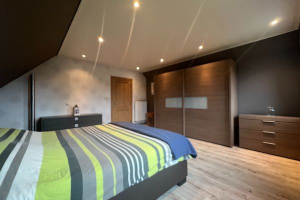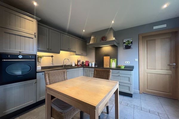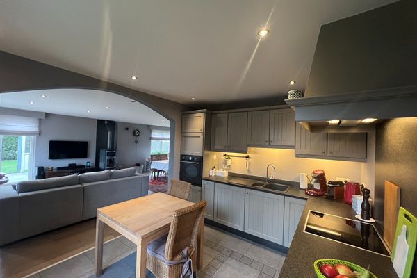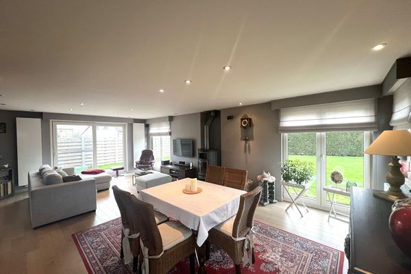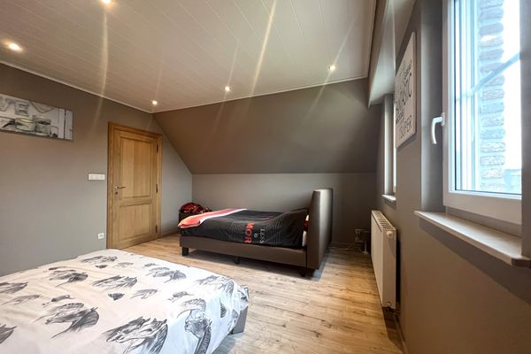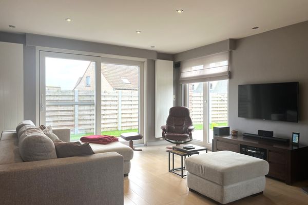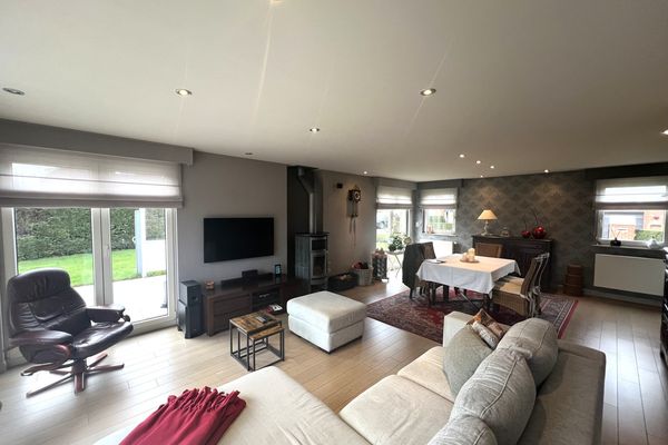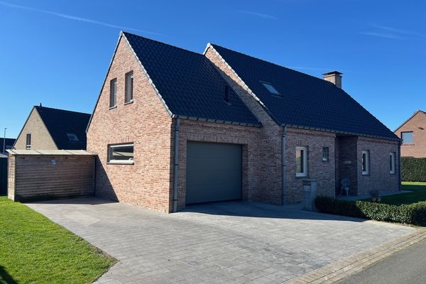 Indeling: inkom met traphal - gastentoilet - bureau/slpk - lichtrijke leefruimte met eetplaats en salon - open keuken (voorzien van alle toestellen) - berging met aansluiting wasmachine/droogkast - 3 slaapkamers (2 zeer ruime slpks en 1 kleine slpk) - badkamer met inloopdouche en lavabomeubel - zolder - inpandige garage met automatische poort - tuin met aangelegd terras.